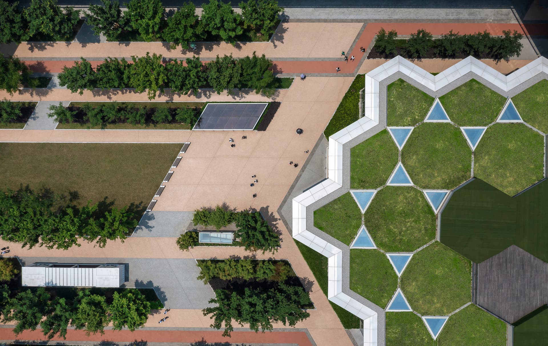 The new headquarters is accessible to the public, providing connectivity to the rest of the region through amenities such as a visitor center, public auditorium and events plaza, as well as restaurants and coffee shops and services such as a post office and flower shop.